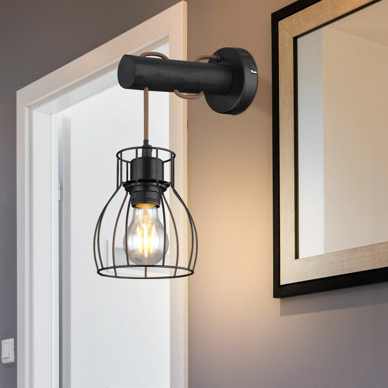 Descrizione Questa lampada da parete è un'aggiunta elegante ai tuoi interni. La lampada da parete grande 33 cm è composta da un'asta di legno nei toni del nero, che è disposta orizzontalmente alla parete e da cui pende un paralume a griglia in metallo nero. Puoi equipaggiarlo con una lampadina E27 a tua scelta, dandoti la possibilità di determinare individualmente il colore e la luminosità della luce. Puoi completare il quadro generale delle tue quattro pareti con altri modelli della stessa serie. La fornitura non include una lampadina. Particolare lampada • Tipo di lampada: lampada da parete • Materiale: metallo, legno • Paralume: gabbia, nero • Grado di protezione: IP20 • Diametro staffa a parete: 10 cm • Larghezza x altezza x sporgenza in cm: 13,6 x 33 x 24 • Presa: 1x E27 • Lampadina inclusa: n • Potenza lampada: 1x massimo 40 watt • Voltaggio: 230V, 50Hz