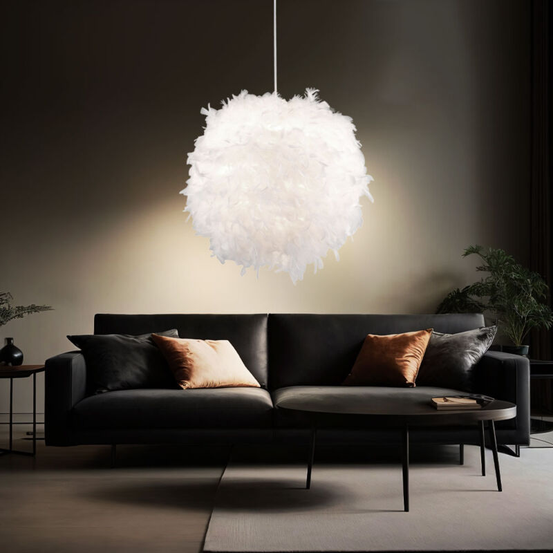 Descrizione Lampada a sospensione moderna con paralume con piume d'anatra per il tuo soggiorno. Questa lampada a sospensione attira l'attenzione grazie al suo design insolito. Consiste in una palla di carta con vere piume d'anatra e fa una bella figura in quasi tutti i soggiorni. Una lampada con attacco E27 e una potenza massima di 40 watt può essere utilizzata nell'apparecchio per fornire un'illuminazione piacevole. La sorgente luminosa non è inclusa nella fornitura. Dettagli lampada • Tipo di apparecchio: apparecchio a sospensione • Materiale: pallina di carta, 100% piume d'anatra • Colore bianco • Grado di protezione: IP20 • Diametro paralume in cm: 30 • Altezza totale in cm: 150 • Presa: 1x E27 • Lampadine incluse: no • Lampadine: 1x massimo 40 watt • Alimentazione: da 220 a 240 volt, 50 -60 Hz