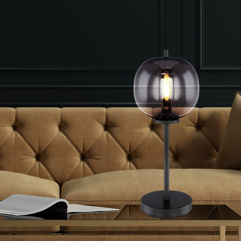 Descrizione Questa lampada da tavolo BLACKY è realizzata in metallo nero con un vetro color fumo (Ø 18,5 cm). Il design del vetro è individuale. Questa lampada alta 45 cm con interruttore ha una presa E14 (max.40 watt), che consente una libera scelta delle lampade. A causa della loro longevità e risparmio energetico, consigliamo lampade a LED. Questa lampada da interno è ideale per la tua zona pranzo e soggiorno. Dettagli lampada • Tipo di lampada: lampada da tavolo • Materiale: metallo • Colore: nero • Paralume: vetro, fumo • interruttore • Diametro x altezza in cm: 18,5x45 • Presa: 1x E14 • Lampadine incluse: No. • Uscita lampadina: max. 40 watt • Alimentazione: 220 -240V, 50 -60Hz