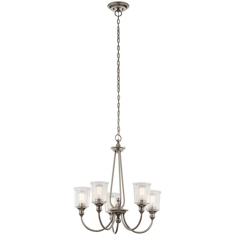 Descrizione La collezione Waverly ha l'atmosfera di un classico ritrovamento di antiquariato. Abbastanza versatile da funzionare con decorazioni tradizionali, di transizione o addirittura contemporanee, il vetro trasparente con anima abbinato a un classico peltro o finitura in ottone naturale, esalta il tocco vintage. Dettagli • Tipo prodotto: Lampadario • Altezza in cm: 71, 1 • Ø in cm: 66 • altezza minima in cm: 83.7 • altezza massima in cm: 269.5 • materiale: acciaio, semi di vetro • finitura: latta classica • Numero di prese: 5 • Potenza massima: 60W • Presa: E27 • Lampadina inclusa: no • Tensione: 220-240V 50hz • Classe di protezione: Classe I • Lunghezza catena/filo/cavo in cm: 191.5 • Altezza piastra a soffitto in cm: 2.8 • Larghezza/diametro piastra a soffitto: Ø170mm