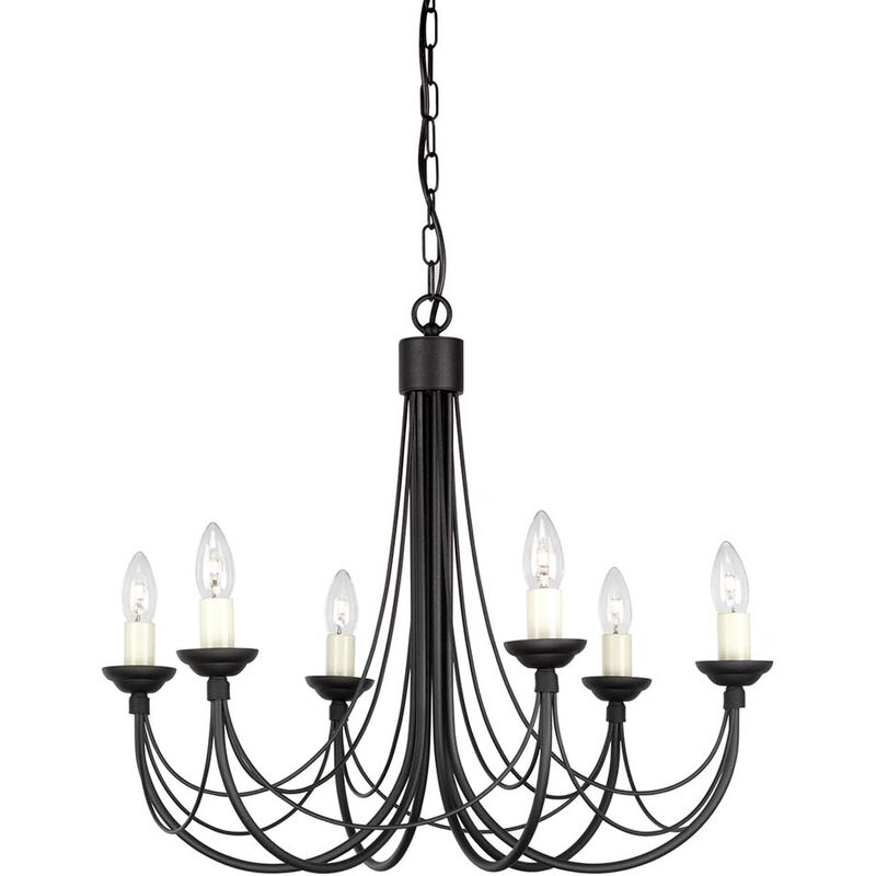 Descrizione Una gamma di accessori in stile candelabro gotico con distintivi tendini in filo metallico legati a mano e tubi di candele color avorio. La gamma completa può ospitare vetro opzionale, se necessario. Inoltre il CB3, CB5 e CB6 tramite il sistema di conversione a filo che consente una facile regolazione da catena a semifilo. Dettagli • Tipo prodotto: Lampadario • Altezza in cm: 58 • Ø in cm: 61 • Altezza minima in cm: 64.5 • Altezza massima in cm: 207.5 • Materiale: acciaio dolce • Finitura: Nero • Numero di prese: 6 • Potenza massima: 60W • Presa: E14 • Lampadina inclusa: no • Tensione: 220-240V 50hz • Classe di protezione: Classe I • altezza del piatto a soffitto in cm: 2,5 • larghezza/diametro del piatto a soffitto in cm: 11