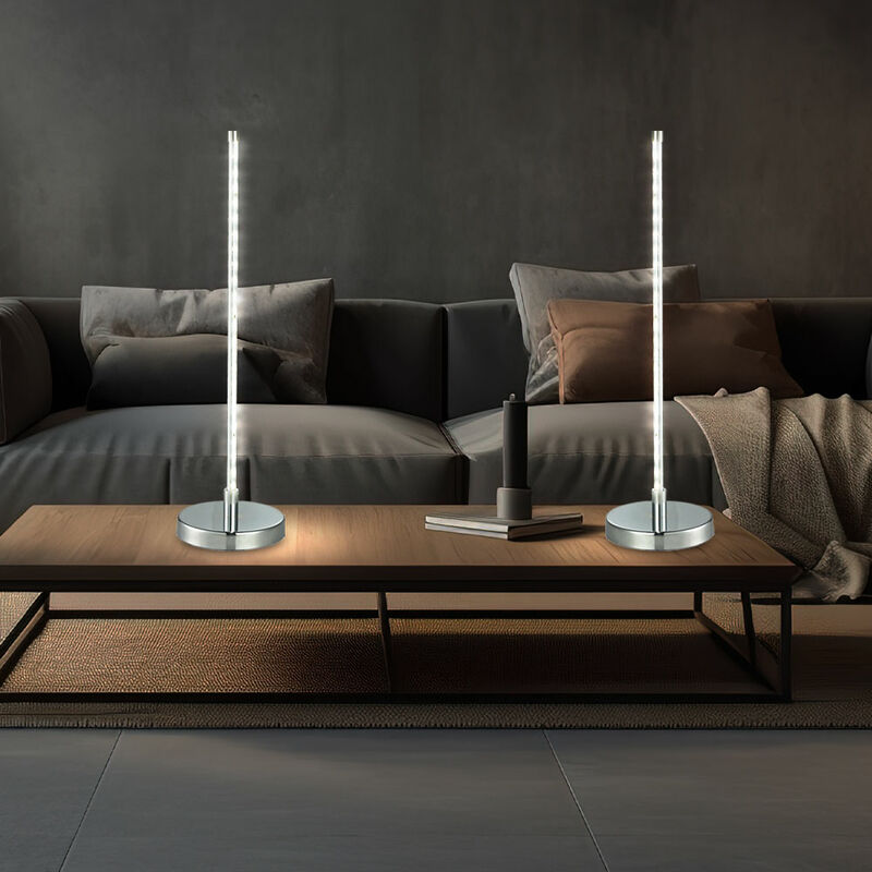 Descrizione Elegante lampada da tavolo con tecnologia LED integrata Con questa elegante lampada metti un nuovo highlight nel tuo soggiorno! La tecnologia LED integrata garantisce un'illuminazione piacevole e priva di abbagliamento ed è anche a risparmio energetico. Rispetto alle luci normali, i faretti LED consumano solo un una quantità minima di elettricità e hanno un consumo persino inferiore rispetto alle lampade a risparmio energetico. Questo protegge l'ambiente e il tuo portafoglio. È inclusa una sorgente luminosa a LED di alta qualità a risparmio energetico. La fornitura include 2 lampade da tavolo! Dettagli • tipo di lampada: lampada da tavolo • cornice: cromo • paralume: acrilico • Interruttore • Grado di protezione: IP20 • Dimensioni larghezza x altezza in cm: 12x43 • Attacco: 1x LED SMD • Sorgente luminosa inclusa: Sì • Sorgente luminosa di alimentazione: 1x LED da 4 watt • Flusso luminoso totale: 340 lumen • Colore della luce: bianco neutro • Alimentazione: 230 volt • Le