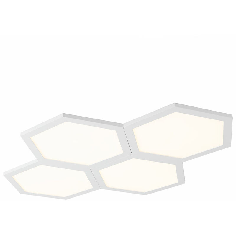 Descrizione Questa lampada da soffitto colpisce per il suo design semplice realizzato in alluminio bianco e plastica opalina. I quattro telai esagonali in alluminio, disposti a nido d'ape, contribuiscono all'aspetto perfetto della plafoniera. L'interno di ciascuna è dotato della plastica opalina che copre le lampadine a LED incluse. Con queste, la plafoniera fornisce 2920 lumen di luce forte con un piacevole colore della luce di 3000 Kelvin (bianco caldo). Con altri modelli della stessa serie, puoi completare il quadro generale dei tuoi interni e garantiscono un ambiente elegante. Dettagli chiari • Tipo di lampada: plafoniera• Materiale: metallo, plastica • Colore: bianco, opale• Classe di protezione: 2• Classe di protezione: IP20 • Lunghezza x larghezza x altezza in cm: 75 x 52 x 4,8 • Illuminante: LED• Sorgente luminosa inclusa: Sì (installata in modo permanente)• Sorgente luminosa di potenza: 48 Watt• Flusso luminoso: 2920 Lumen• Colore luce: bianco caldo• Alimentazione: 230V, 50Hz