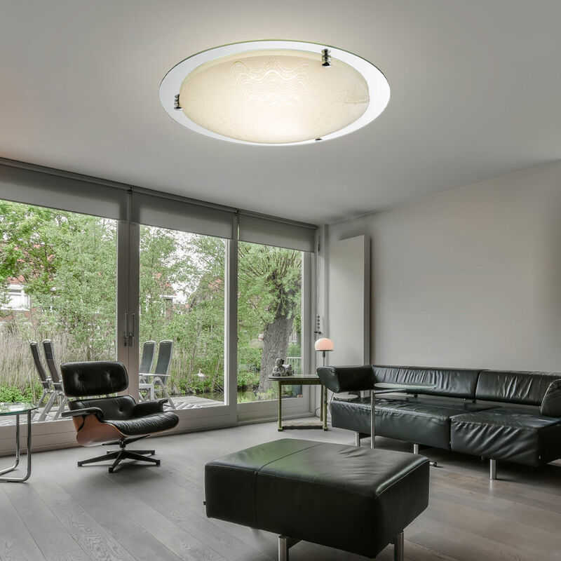 Descrizione Questa eccellente plafoniera si caratterizza per il suo bellissimo design e la lavorazione di alta qualità. Elementi cromati, vetro smerigliato, specchio e vetro con struttura sono stati scelti per garantire un aspetto estetico. Il colore della luce di questa lampada può essere regolato in tre fasi. La prima tonalità è 3000K ed è percepita come un piacevole bianco caldo, il livello successivo è 4000K (bianco neutro) e l'ultima tonalità è 6500K (luce diurna). Questo articolo può anche essere abbinato molto bene con altri prodotti della stessa serie. Una lampadina LED è incorporata nella lampada. Dettagli della lampada • Tipo di lampada: plafoniera• Materiale: cromo, vetro• Colore: cromo, vetro con struttura, satinato• ottica a specchio• Circuito CCT (3000-6500K)• Diametro x altezza in cm: 41,5 x 8,5 • Portalampada: 1x LED• Lampadine incluse: Sì• Potenza lampadina: 1x 18 watt• Flusso luminoso: 1x 1200 lumen• Colore luce: caldo bianco - bianco freddo• Voltaggio: 230V, 50Hz