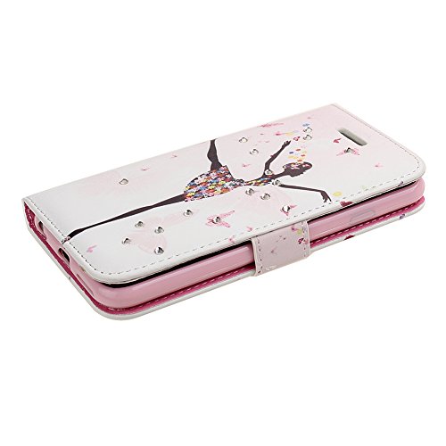 Etche Bling cassa del raccoglitore per iPhone 6,caso di vibrazione per iPhone 6S,cassa di cuoio di scintillio per iPhone 6,Carino diamante di Bling Dance Girl disegno della farfalla lucida Inland scintillio Flip Case magnetico per iPhone 6/6S 4.7+ Blu Stylus Pen e scintillio di Bling Diamond Dust Plug colora casuale-Dance Girl