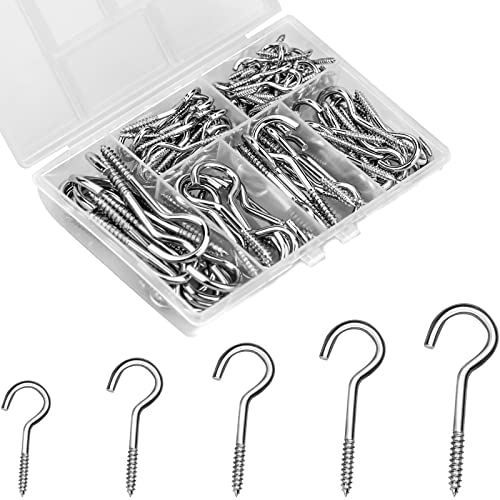 ETELIAR 115 Pezzi Ganci a Vite, 6 Misure Ganci Avvitabili, Ganci a Soffitto per Disponibile All'interno e All'esterno, Argento