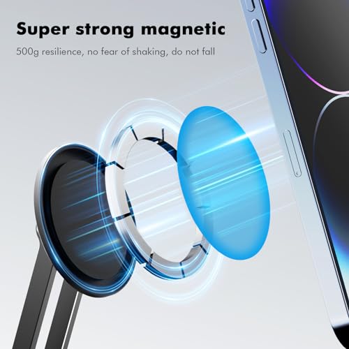 Adatto a tutti i telefoni: il supporto magnetico per cellulare da tavolo può essere utilizzato direttamente per iPhone 15 14 Pro Max 13 12 serie e custodie L'anello magnetico in metallo incluso nella confezione può essere fissato con iPhone 11, telefoni Android e custodie per un effetto,mantenendo il telefono assolutamente stabile e stabile.