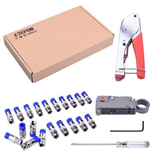 ETEPON Pinza Spelafili di Cavo, RG59 RG6 Crimpatrice Cavo Coassiale Stripper Filo Coassiale e 20 Pezzi F Connettoi per TV via Cavo Audio Video - NC41