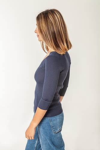 ETERKNITY - Maglione Donna a Coste in Viscosa Sostenibile, Marino Blu, M