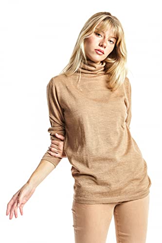 ETERKNITY - Maglione Donna a Dolcevita in Lana Merino, Camel, M