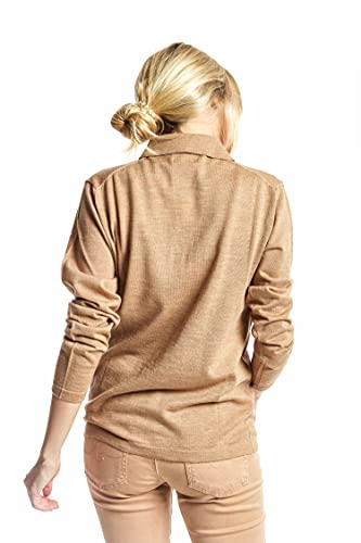 ETERKNITY - Maglione Donna a Scollo Polo in Lana Merino, Camel, M