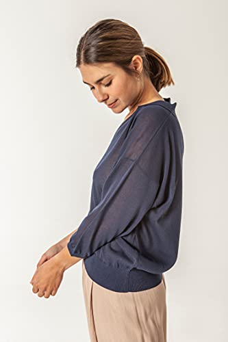 ETERKNITY - Maglione Sottile Dona a Scollo Polo in Viscosa Sostenibile, Marino Blu, S