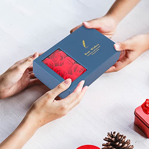 【Confezione regalo a sorpresa】 Le scatole regalo di compleanno sono particolarmente classiche in blu scuro. C'è un cassetto sotto la scatola, dove puoi conservare regali personali come anelli di gioielli e collane dove puoi mettere gioielli come regali. Questa è l'idea perfetta per portare sorprese. Non c'è polline, le persone allergiche al polline possono anche godersi i fiori normalmente.