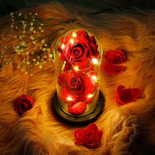【Beauty and The Beast Rose Kit】La nostra incredibile luce della cupola di rosa arriva in un'elegante cupola di vetro fatta da materiali eccellenti. Il fiore sembra affascinante e vividamente con un lungo periodo di conservazione, mantenendo il tuo amore per sempre durare per sempre.