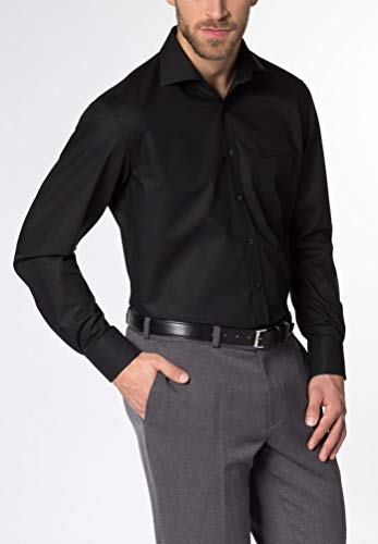Eterna, camicia a maniche lunghe in popeline, alla moda, aderente, tinta unita Nero 45W Manica lunga