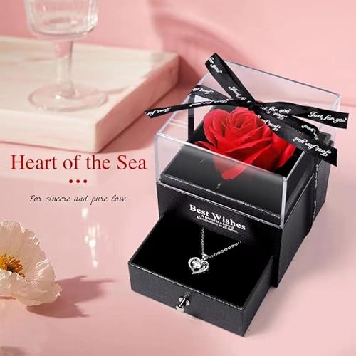 【Collana a cuore e portagioie con rose】: Bellezza impressionante La rosa eterna in un portagioielli di alta qualità, c'è anche una collana da donna in argento 925 come regalo nella scatola del cassetto, con un biglietto di auguri, puoi anche scrivere sulla carta del cuore. Sempre un ottimo regalo per moglie, madre, sorella, nonna, fidanzata.