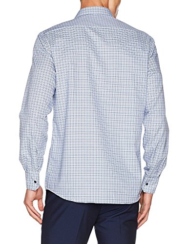 Eterna Comfort Fit Langarm Blau Kariert mit Modern Kent-Kragen Camicia Formale Uomo