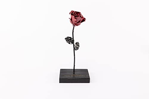 Rosa Eterna in Ferro Battuto con incisione personalizzata - Forgiata a Mano (Rosso/Nero)