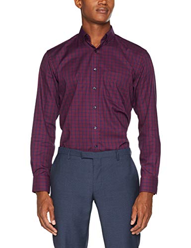 Eterna Fit Langarm Rot Kariert mit Modern Button-Down-Kragen Camicia Formale Uomo