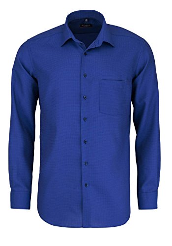 Eterna Fit Langarm Marine Kariert mit Modern Kent-Kragen Camicia Formale Uomo