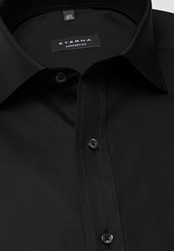 ETERNA Comfort Fit camicia da uomo a maniche lunghe (65 cm), taglio comodo in puro cotone svizzero (non necessita di stiratura, adatta all'asciugatrice) con colletto New Kent e tasca sul petto (logostick), tinta unita Popeline nero