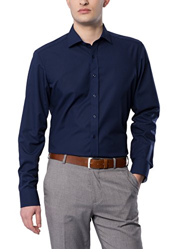 ETERNA uomini SLIM FIT long sleeve shirt dark blue 15 1/2 Normal (26 1/2 inch)