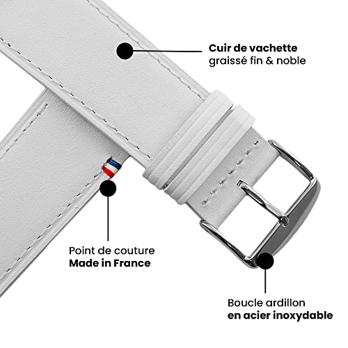 Eternel - Cinturino compatibile con Apple Watch Simple Tour bianco 42/44/45/49mm adattatori acciaio inossidabile argento - Pelle di vacchetta fatta in Francia - Compatibile con tutti gli Apple Watch