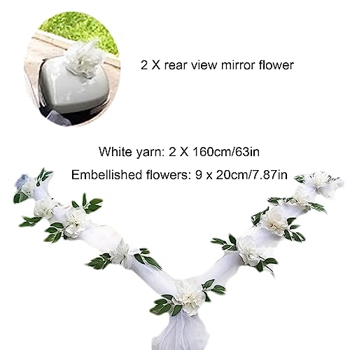 Eterspr kit Decorazioni Auto Matrimonio, Addobbi per Auto Matrimonio, Fiori di Matrimonio per Auto, Da Utilizzare in Occasione di Matrimoni, Celebrazioni e Feste (8 Fiori Impreziositi, 2 Veli Bianchi)