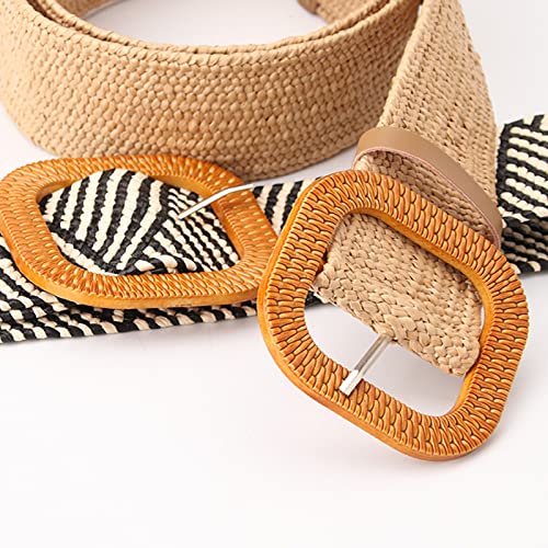 Design raffinato in paglia: cintura elastica in paglia da donna con fibbia retrò, il classico design con fibbia quadrata in plastica è semplice e alla moda.