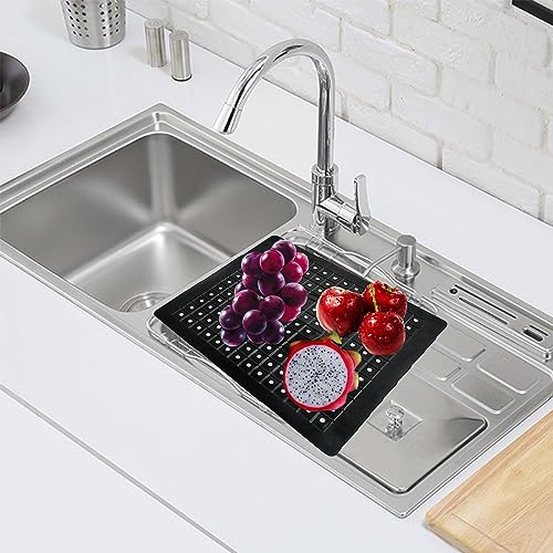 Multiuso: Tappetino Quadrato per Lavello ha una funzione drenante e antiscivolo, può essere utilizzato per filtrare i residui quando si lavano frutta e verdura nel lavandino, e può anche essere utilizzato per appoggiare le stoviglie, drenando e proteggendo allo stesso tempo il piano di lavoro.