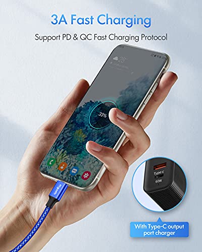 【PD Ricarica rapida 60W】Cavo usb c supporta PD 3.0, QC 3.0, AFC ricarica rapida e sicura, potenza fino a 60 W (20V/3 A). Cavo USB Tipo C la massima velocità di trasmissione teoricamente raggiungibile fino a 480 Mbps. Nota: non è possibile raggiungere la velocità di USB 3.0 e non supporta la trasmissione video.