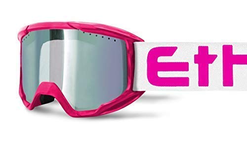 ETHEN Occhiali/Maschera da Sci e Snow, Flessibile ed Areata, Frame Dotato di Scassi Otg per i Portatori di Occhiali da Vista, Lente Termica Doppio Strato con Filtri, Made in Italy, Bianco/Fucsia