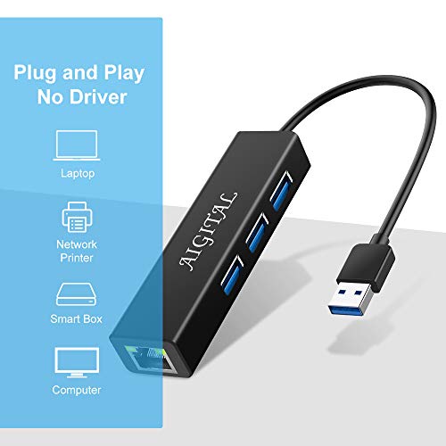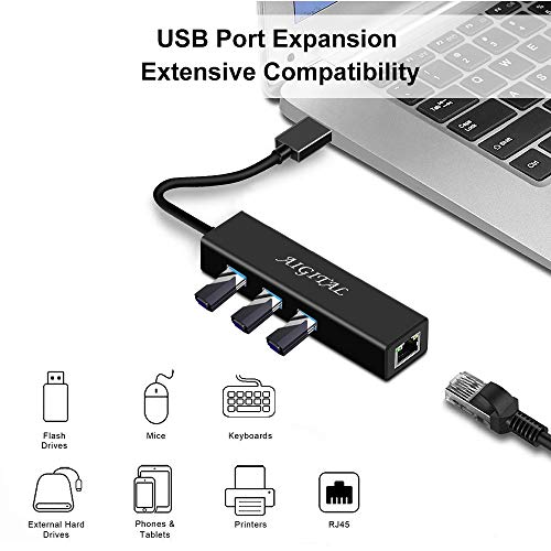 Hub USB 3.0 Ethernet Adattatore (3 Porte USB + 1 Porta Gigabit Ethernet), Adattatore di Rete LAN Gigabit Ethernet RJ45 10/100/1000Mbps Supporta Mac OS X Windows 10/8.1/8/7 / XP/Vista