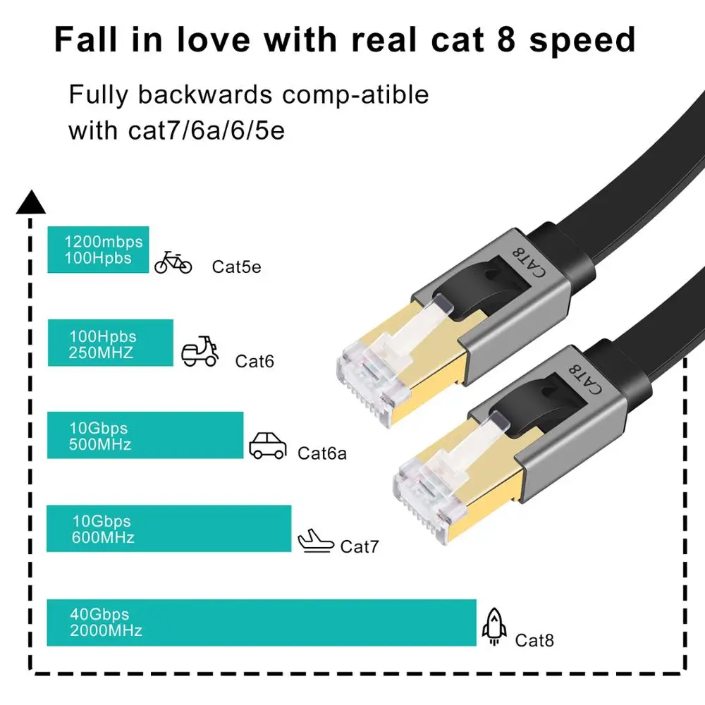 CAT8 Ethernet Cable 40Gbps 2000Mhz High Speed Gigabit SFTP Lan Network Internet Cables for PS 4 Router Laptop Cable Ethernet