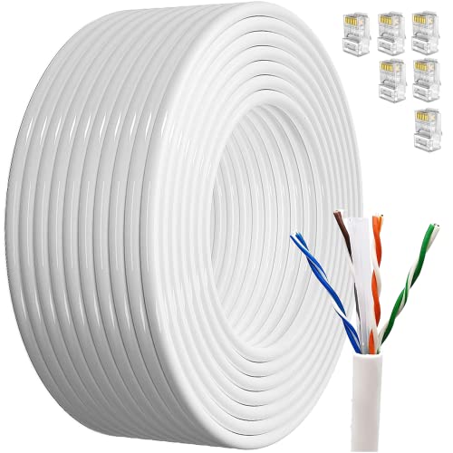 Cavo Ethernet Cat 6 30 Metri, Bobina Cavo Lan per Esterno Non Schermata Cavo di Rete Cross 30m Molto Lungo Filo Ethernet UTP AWG23 Gigabit Cavo Internet Alta Velocità Cavo Patch Bianco