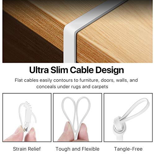 Profilo ultra sottile e piatto: il design del cavo piatto, con uno spessore di soli 1,5 mm, aiuta a evitare cavi aggrovigliati e consente di risparmiare spazio. Il cavo Ethernet piatto è flessibile quando viene eseguito sotto il tappeto, dietro i mobili o piegato sul piano della sua sottile croce.