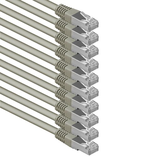 Cat6 Ethernet LAN cavo di rete set 10 100 1000 MBit s Patchkabel Cat S-FTP doppia schermato PIMF Compatibile con Cat5 Cat6 A Cat7 Cat8 per switch Router modem patchpannel Grigio - 10 pezzi 0,5m