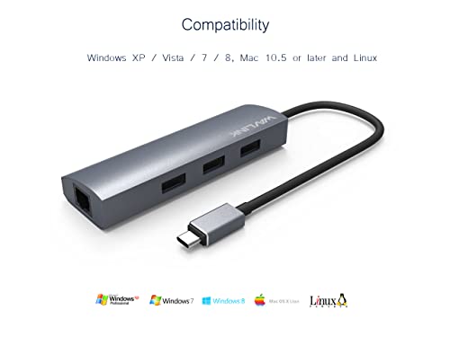 Hub USB C Ethernet, WAVLINK Adattatore USB C Hub Ethernet, con USB 3.0, RJ45 Gigabit Ethernet, per MacBook,Mac OS, iMac, Windows, Chrome, Surface, XPS