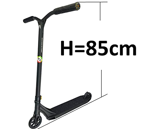 Altezza totale dello scooter misurata dal suolo: 85 cm. Altezza ottimale del manubrio = altezza dell'osso dell'anca. La barra non deve andare ben oltre l'altezza dell'ombelico, se si è seduti sul monopattino