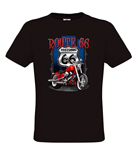 Ethno Designs - Americas Highway Route 66 - Motociclista T-Shirt per Uomini - Vecchia Scuola Rockabilly Vintage Stile Retrò - regular fit, nero, taglia L