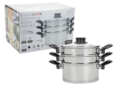 Ethos Cook - Set pentole per Cottura a Vapore con 3 Livelli, 18 cm, Colore: Nero
