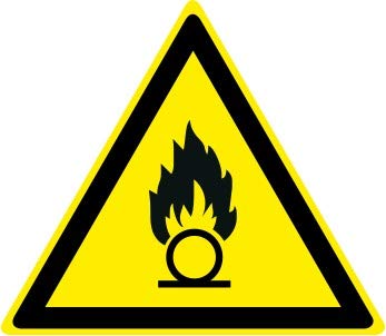 Etichetta adesiva pittogramma segnale di pericolo"Pericolo sostanze comburenti" - PR028-10 per confezione (50x50mm)
