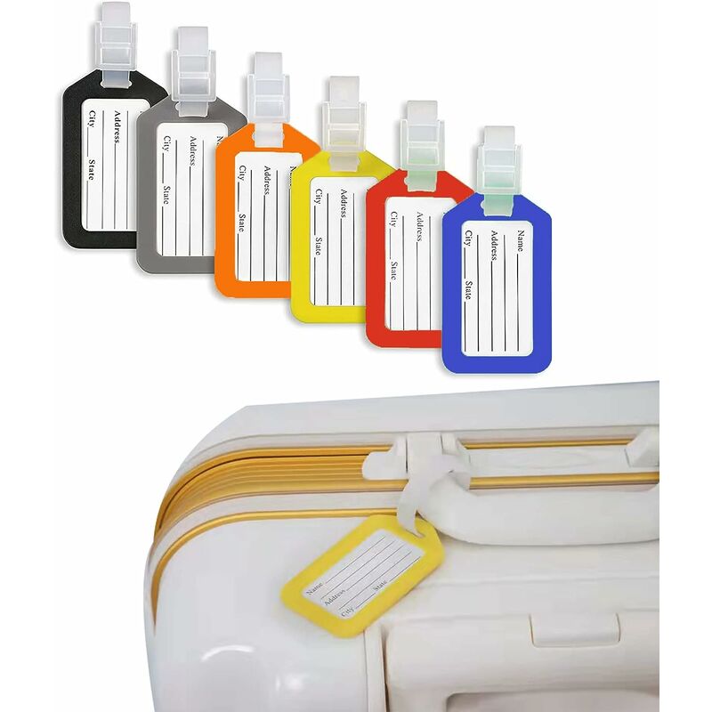 Effetto: l'etichetta del bagaglio ha colori vivaci, il che rende facile identificare il bagaglio registrato quando si ritira il bagaglio in aeroporto. I nostri prodotti sono anche molto comodi da trasportare. Materiale premium: le nostre etichette per il bagaglio sono realizzate in morbida pelle PU con copertura per la privacy completamente pieghevole per un uso flessibile, non facile da deformare e staccare. Le etichette sono realizzate in materiale plastico resistente che può essere piegato, schiacciato e picchiettato senza danni. MULTI OPZIONI: 12 cartellini da viaggio in plastica colorati. Le targhette colorate rendono facile trovare rapidamente il tuo bagaglio in molte valigie. Design accurato: regolabile e rigido, non teme di cadere, rendendo l'etichetta del bagaglio più facile da attaccare al bagaglio;