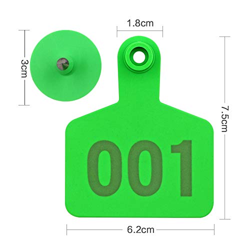M.Z.A Etichetta orecchio bovino Etichetta orecchio in plastica per animale Capra di capra con numero 001-100 (verde)