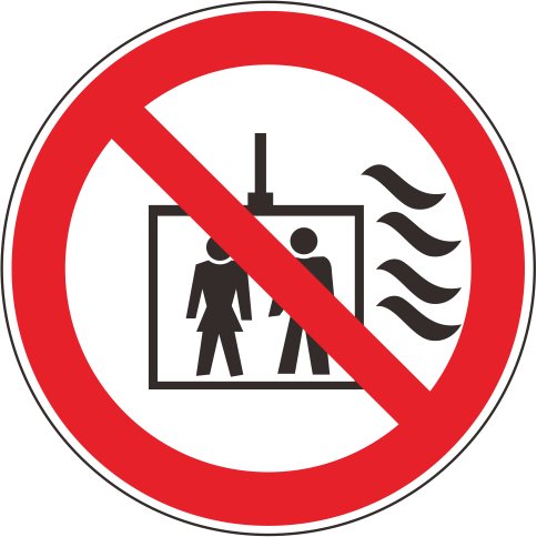 Etichetta - Sicurezza - Avvertenza - Segno di etichetta di sicurezza ISO - Internazionale Non utilizzare l'ascensore in caso di incendio Simbolo 50 mm