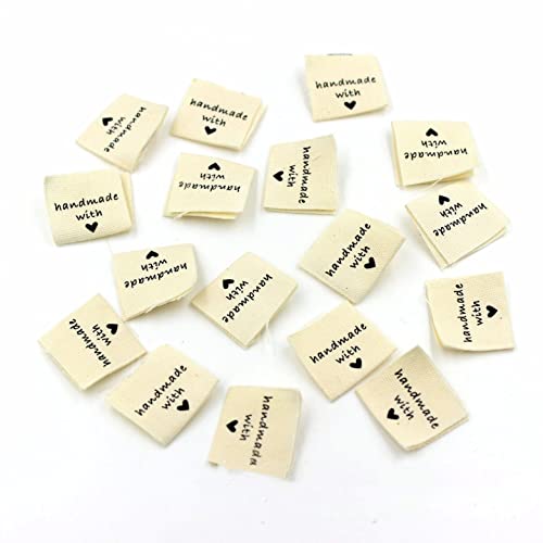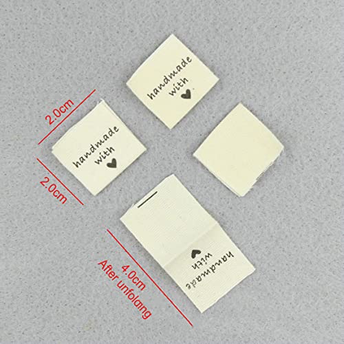 Etichette per Abiti Fatti a Mano con Amore,100 PCS Etichetta in Tessuto Etichette Cucite Etichette di Abbigliamento per Costumi Lavori a Maglia fai-da-te Decorazioni Cucito 2 * 4cm