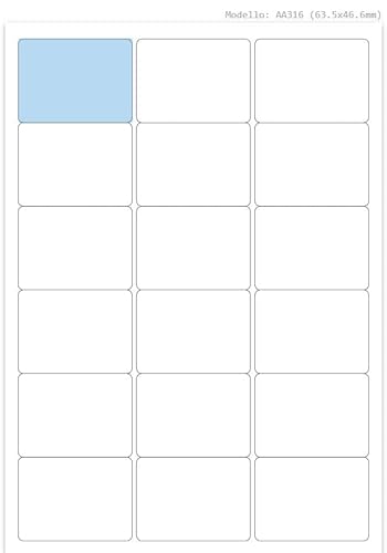 1800 Etichette Adesive con Angoli Arrotondati - 63,5 x 46,6 mm - 18 Etichette Bianche per Foglio - 100 Fogli A4