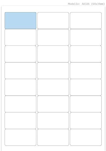 2400 Etichette Adesive con Angoli Arrotondati - 64 x 34 mm - 24 Etichette Bianche per Foglio - 100 Fogli A4