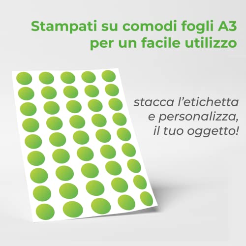 ️ DISPONIBILI IN QUATTRO DIMENSIONI. Potrai scegliere tra tre dimensioni differenti: FORMATO SMALL con 100 etichette per foglio da 30 mm di diametro;