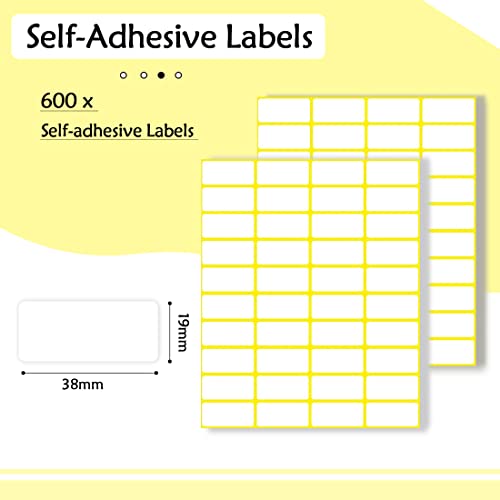 【Etichette Adesive】: 15 etichette adesive bianche, 40 etichette per foglio, 600 etichette in totale. Ogni piccola dimensione dell'etichetta adesiva è 19 x 38 mm. Molto adatto per la maggior parte delle superfici come carta, vetro, plastica, legno, metallo, ecc.
